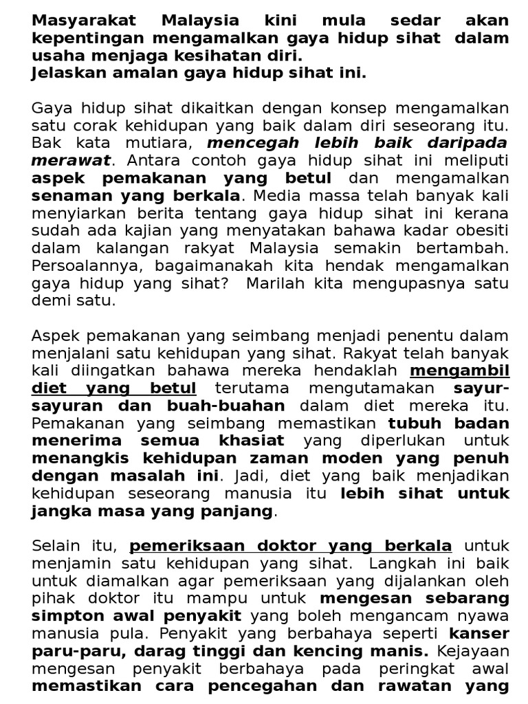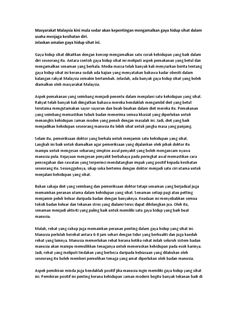 Karangan Gaya Hidup Sihat Satu Amalan Yang Murni Cute766 from i0.wp.com Sepanjang hayat, kami sering diingatkan pentingnya kesihatkan untuk diri kita. Insan yang sihat pastinya dapat memainkan peranan aktif terhadap pembangunan agama, bangsa dan negara. Memahami maksud kebersihan diri, tubuh badan, pakaian dan alatan. Kita masih lagi bicara soal gaya hidup sihat. Anda bisa mencoba 4 tips gaya hidup sehat berikut. Gaya hidup sehat adalah cara kita menjalani hidup guna menurunkan risiko terkena penyakit atau meninggal dunia di usia muda. Semasa hidupnya, gaya hidup yang dijalankan rasulullah saw merupakan cara hidup yang sehat dan pantas untuk dilakukan juga oleh kita dengan melakukan gaya hidup seperti rasulullah, insya allah kita semua akan selalu terhindar dari berbagai penyakit yang berbahaya sekaligus. Tak ikut maknanya tidak mensyukuri nikmat sihat yang kita dapat.