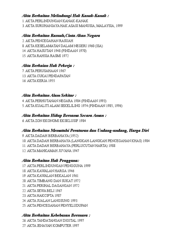 This is a list of acts of the parliament of malaysia.